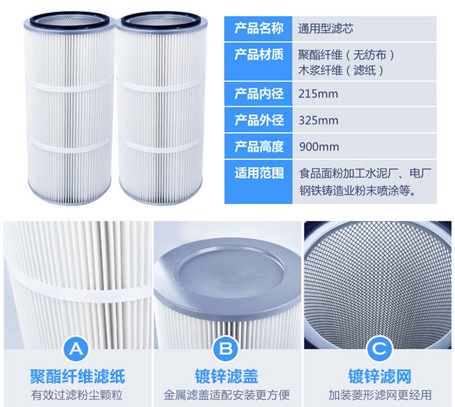 濾材可有效地把細小的粉塵顆粒過濾在濾材表面,從而加強脈沖清灰效果,延長濾筒壽命,以及具有更高的過濾效率。