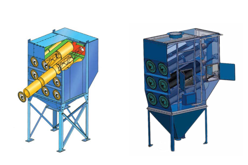 濾筒除塵器以濾筒作為過濾元件所組成或采用脈沖噴吹的除塵器。 濾筒除塵器按安裝方式分,可以分為斜插式,側裝式,吊裝式,上裝式。 濾筒除塵器按濾筒材料分,可以分為長纖維聚酯濾筒除塵器,復合纖維濾筒除塵器,防靜電濾筒除塵器,阻燃濾筒除塵器,覆膜濾筒除塵器,納米濾筒除塵器等。
