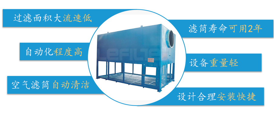 自潔式空氣過濾器吸入含有灰塵的空氣之后,將造成設(shè)備的磨損,吸入的灰塵會在風(fēng)機(jī)葉片表面上結(jié)垢,造成設(shè)備中轉(zhuǎn)子的動平衡失衡精度下降,使其工作壽命大大減短,灰塵中的有害化學(xué)成分會使設(shè)備生銹、腐蝕。因而,空氣動力設(shè)備必須要配高精度空氣過濾器。